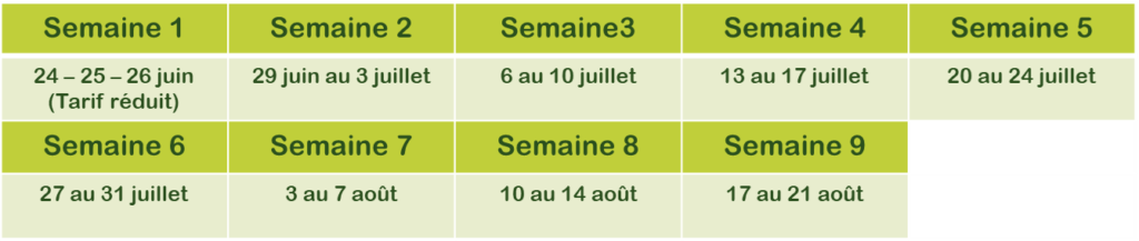 (incluses dans le coût de l’inscription) – l’enfant doit avoir un vélo pour les