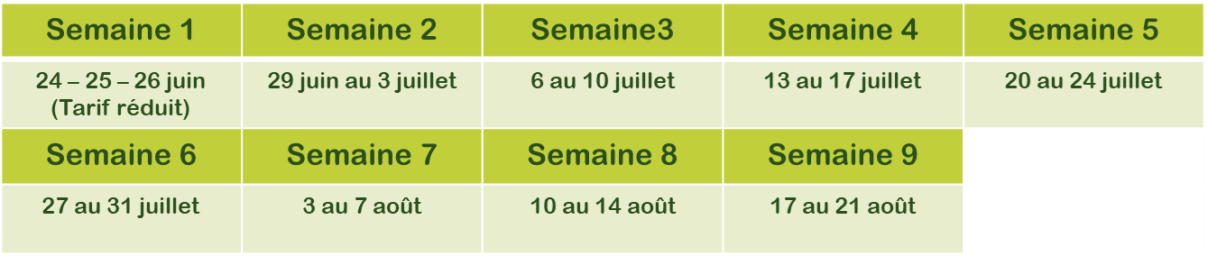 (incluses dans le coût de l’inscription) – l’enfant doit avoir un vélo pour les